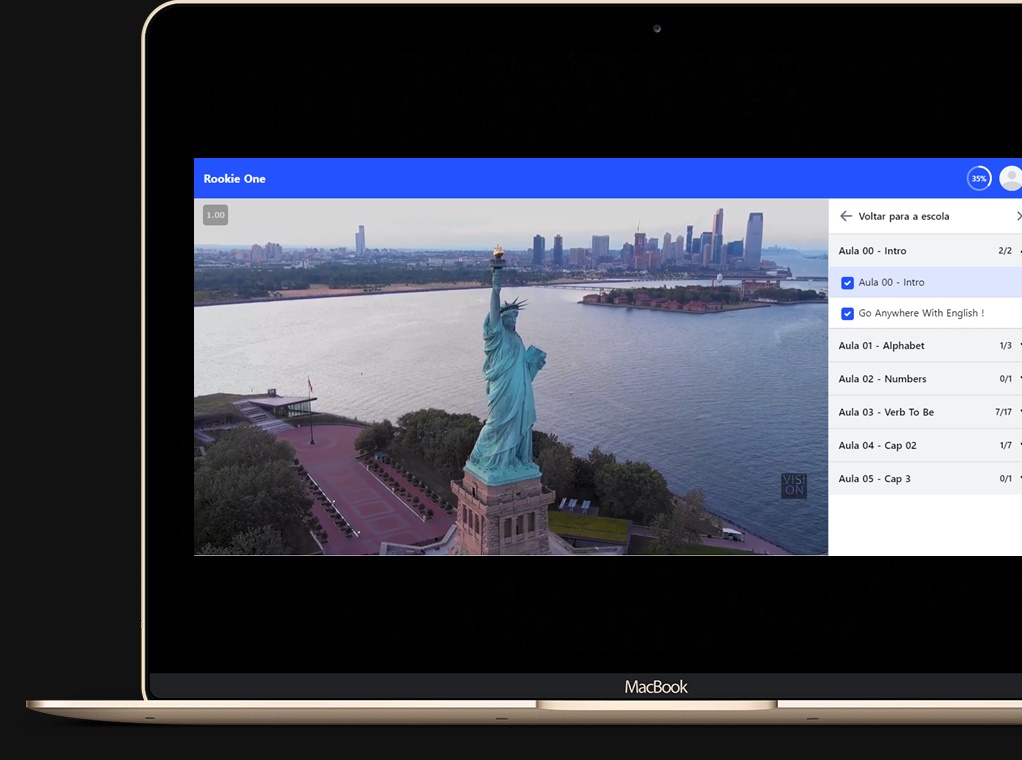 Com professor explicando em sequência lógica desde os tópicos mais básico até os mais avançados. Conversações com inglês de americanos nativos abordando os tópicos apresentados, evoluindo sempre conforme os estudos !